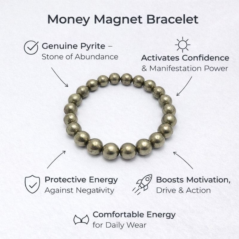The Money Magnet Bracelet is suitable for everyday wear and can also be used during meditation, affirmations, or visualization practices focused on abundance and success. It makes a meaningful gift for anyone starting a new business, career path, or personal financial journey.